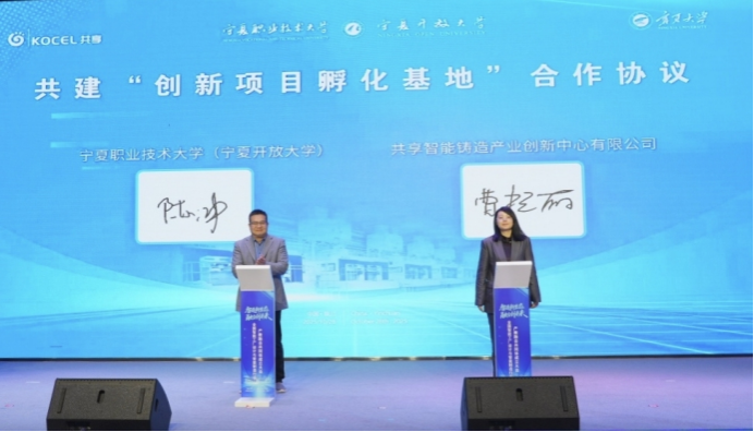 在我院与国家共享智能铸造产业创新中心有限公司产教融合部积极筹备协商下,10月28日,宁夏职业技术大学与国家共享智能铸造产业创新中心有限公司共建“创新项目孵化基地”在我校学校纺织中心一楼报告厅正式签约挂牌。